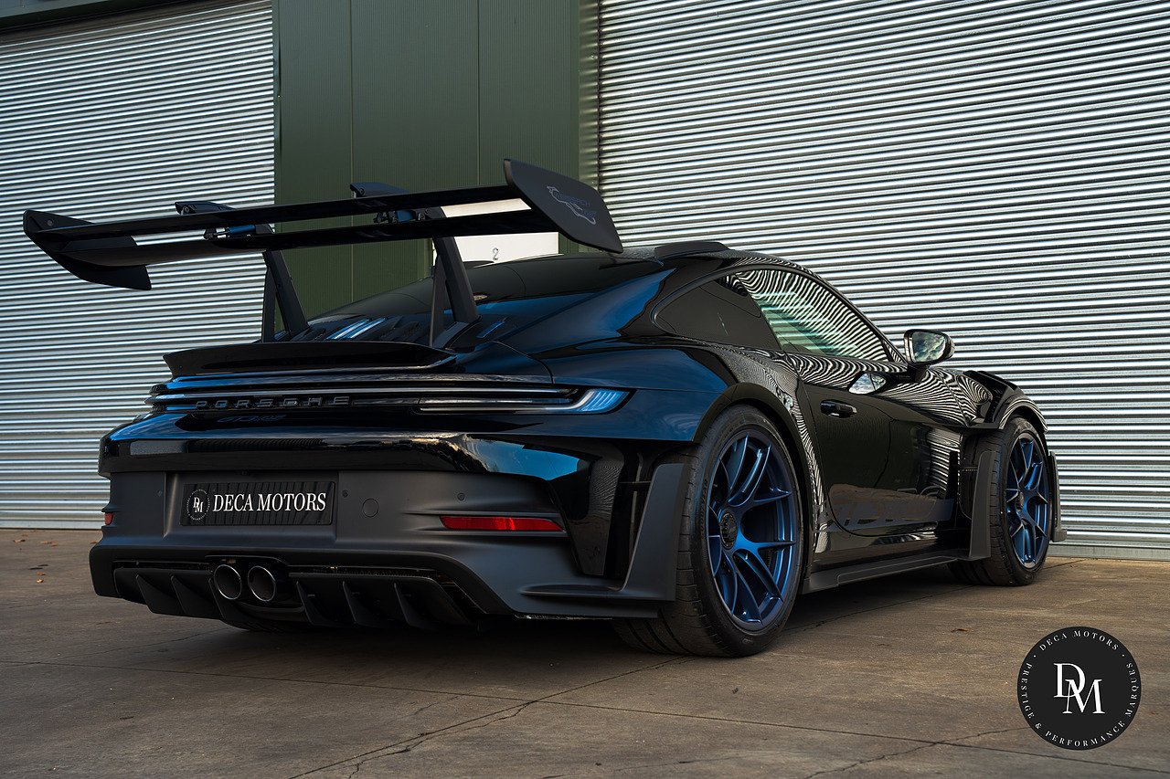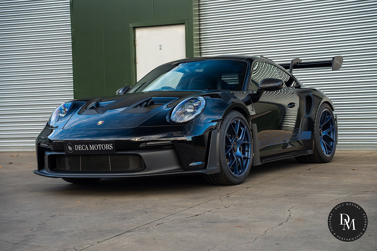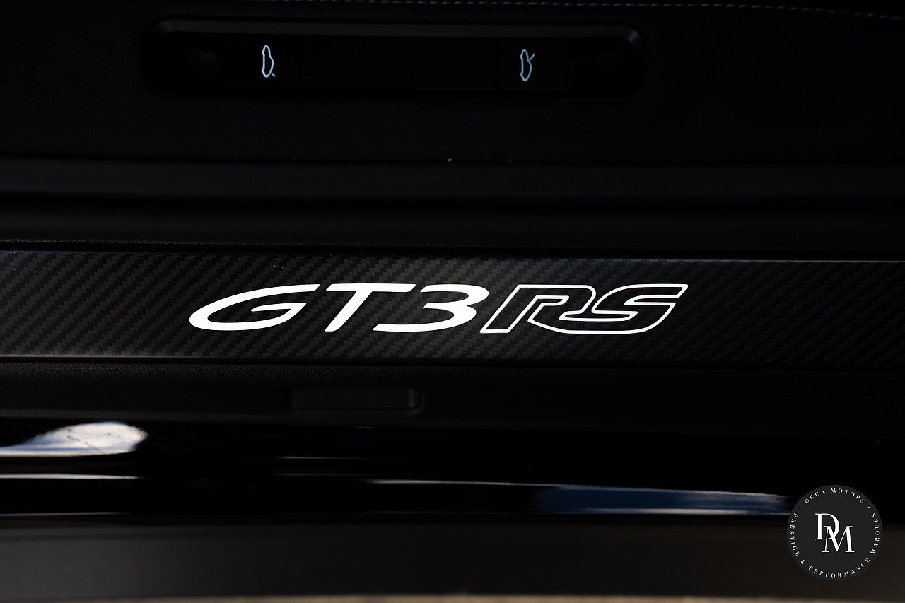 Ice Grey Metallic Porsche 911 992 GT3 RS PDK with £41K Options, Weissach Package, Roll Cage Carbon Fibre, Club Sport Package, 20/21 Inch Indigo Blue GT3 RS Forged Magnesium Lightweight Wheels, Accent Package Logos, Full Bucket Seats, Front Axle Lift, Ceramic Brakes (PCCB) with High Gloss Black Calipers, Tinted LED Main headlights with Matrix Beam and PDLS Plus, Exclusive Design Taillights, Bose Surround Sound, Light Design Package, Sun Visors Race-Tex, Park Assist(rear) including Reverse Camera, Storage Compartment Lid in Race-Tex eith Porsche Crest, Door Sill Guards Carbon Matt Illuminated, LED Door Courtesy Lights, Steering Column Casing in Leather, Rev Counter in White, Chrono Stopwatch Dial in White, Door Opening Loops in Black. Contact us To Reserve