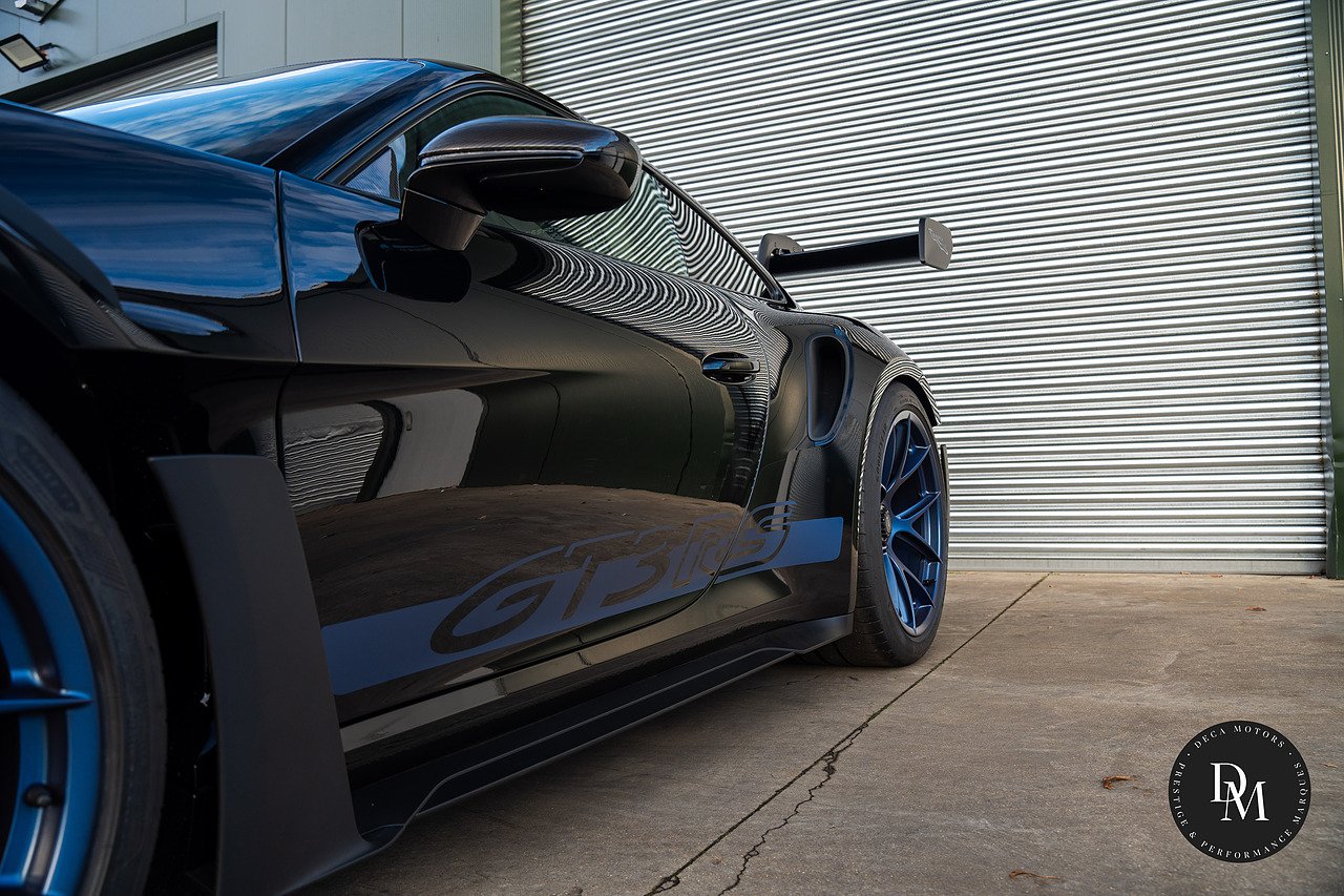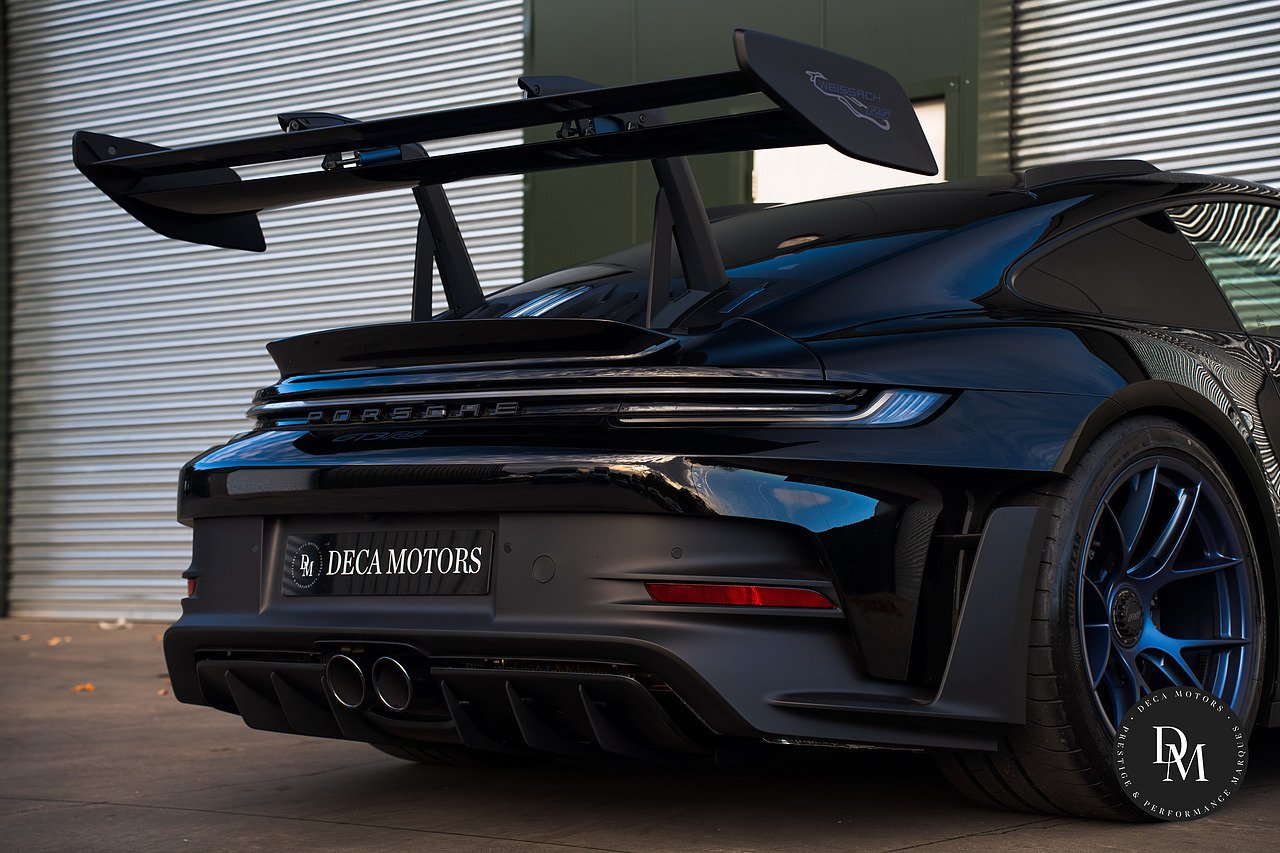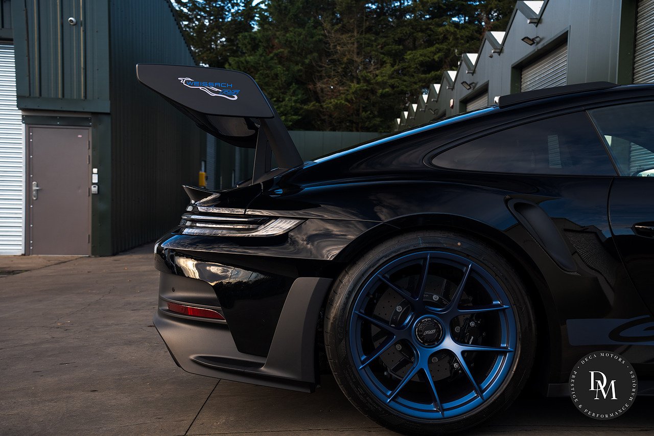 Ice Grey Metallic Porsche 911 992 GT3 RS PDK with £41K Options, Weissach Package, Roll Cage Carbon Fibre, Club Sport Package, 20/21 Inch Indigo Blue GT3 RS Forged Magnesium Lightweight Wheels, Accent Package Logos, Full Bucket Seats, Front Axle Lift, Ceramic Brakes (PCCB) with High Gloss Black Calipers, Tinted LED Main headlights with Matrix Beam and PDLS Plus, Exclusive Design Taillights, Bose Surround Sound, Light Design Package, Sun Visors Race-Tex, Park Assist(rear) including Reverse Camera, Storage Compartment Lid in Race-Tex eith Porsche Crest, Door Sill Guards Carbon Matt Illuminated, LED Door Courtesy Lights, Steering Column Casing in Leather, Rev Counter in White, Chrono Stopwatch Dial in White, Door Opening Loops in Black. Contact us To Reserve