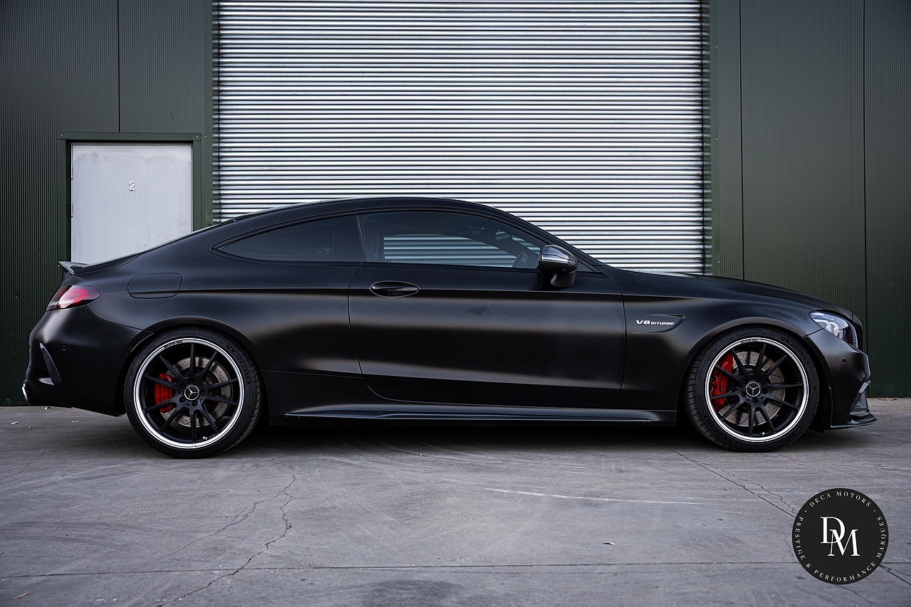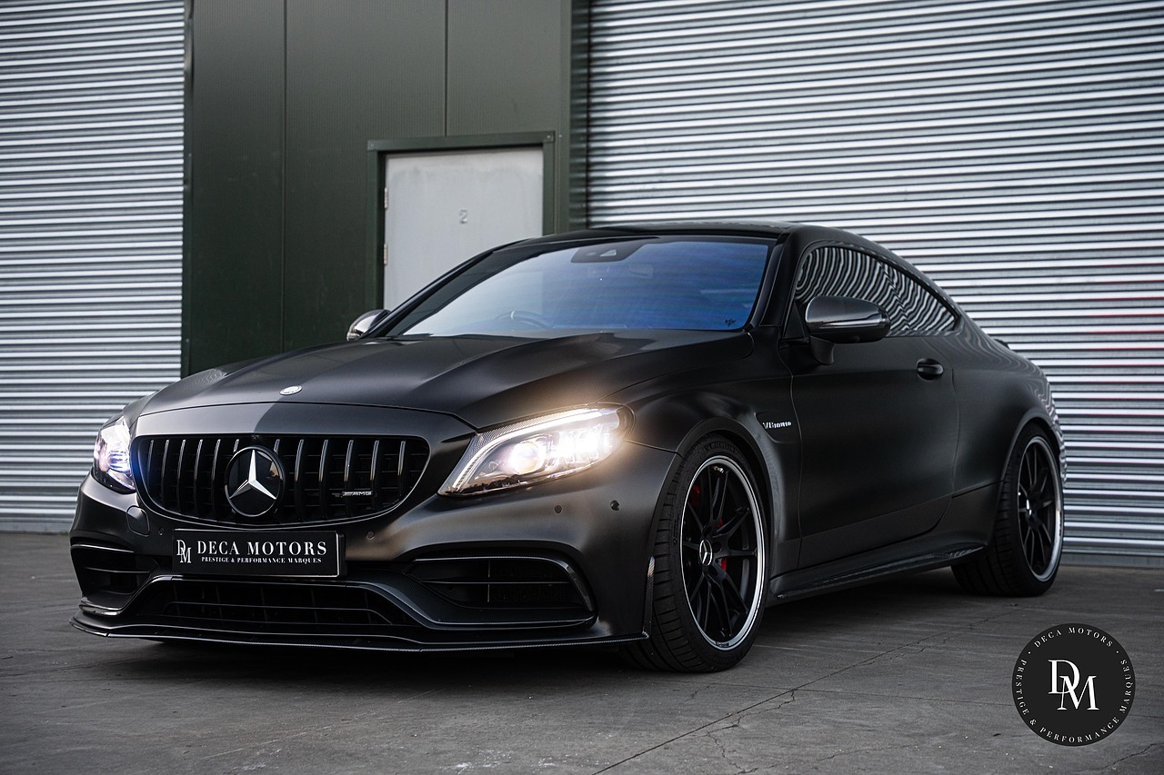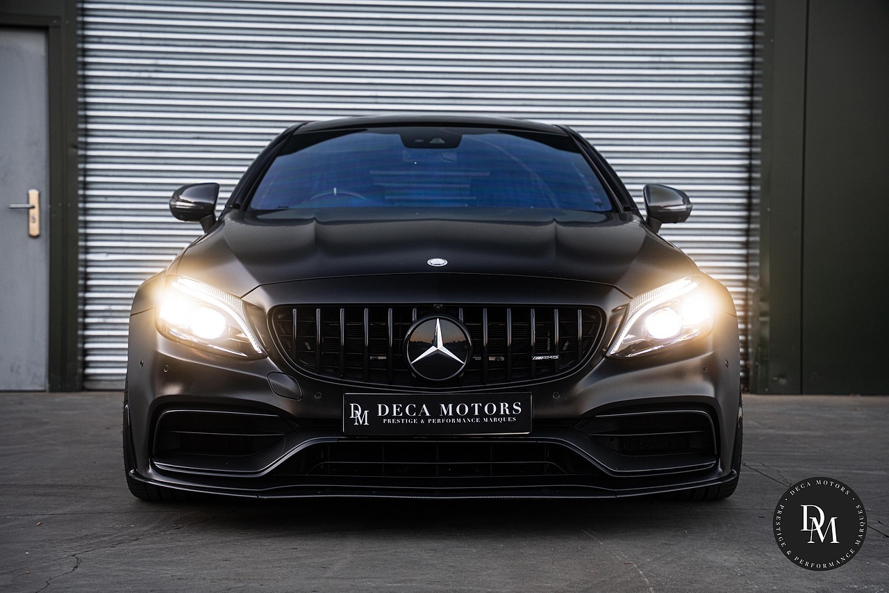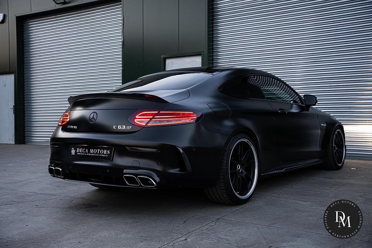 Mercedes-Benz C Class C63 V8 BiTurbo AMG S, MB Service History, PPF in front end and side doors, chameleon tinted front windshield, Satin black full wrap with carbon PPF on the aero kits, and ceramic coated, Stage 2 tuning and heatshelded catless downpipes, ASR exhaust flaps remote control, Eibach Pro lowing springs and wheel spacers, Full carbon interiors including speaker panels and steering wheel (Factory springs and downpipes can still come with the car) VIEWING BY APPOINTMENT ONLY, FINANCE PACKAGES TO SUIT YOUR NEEDS.