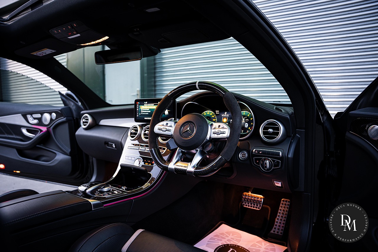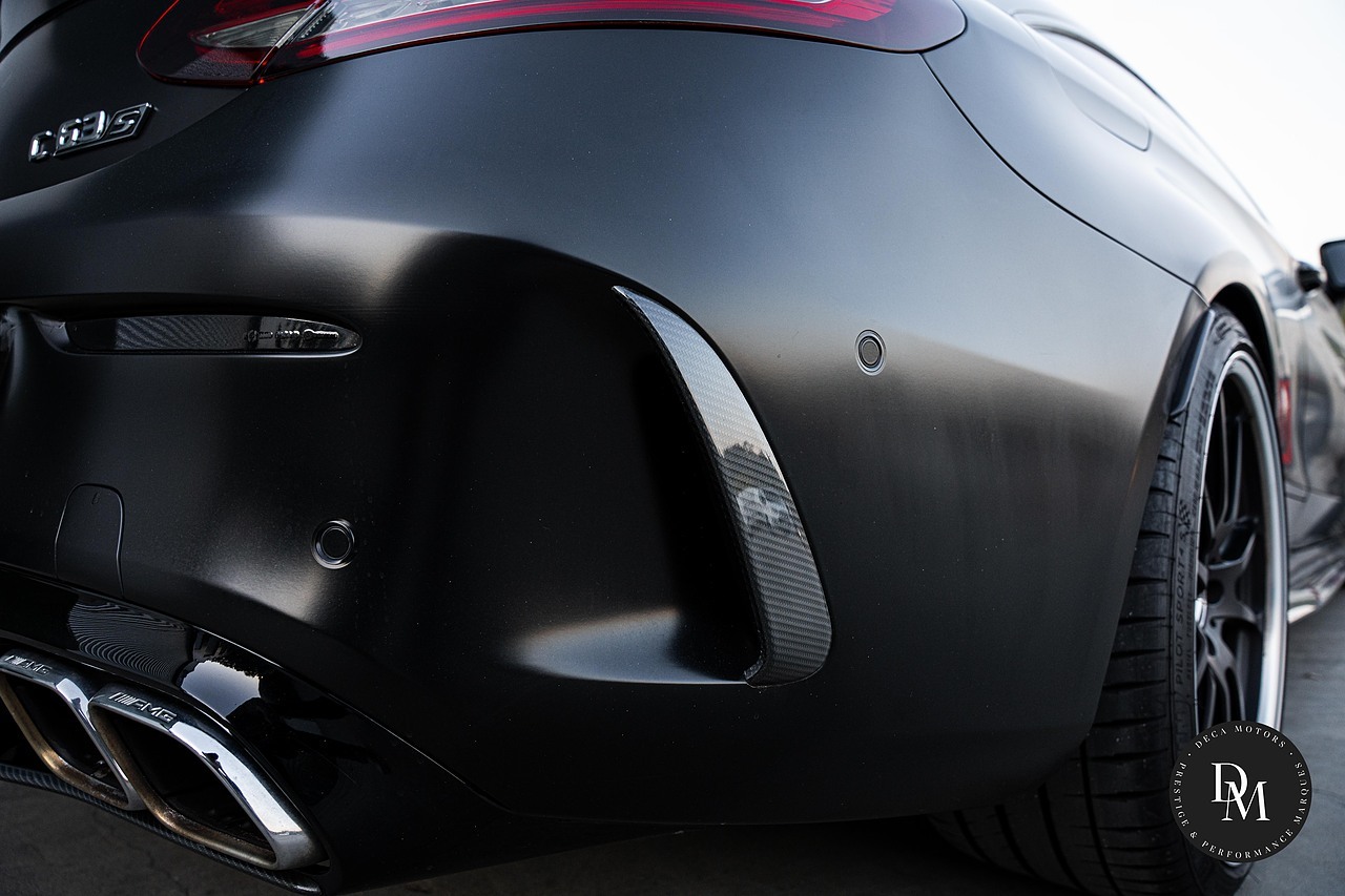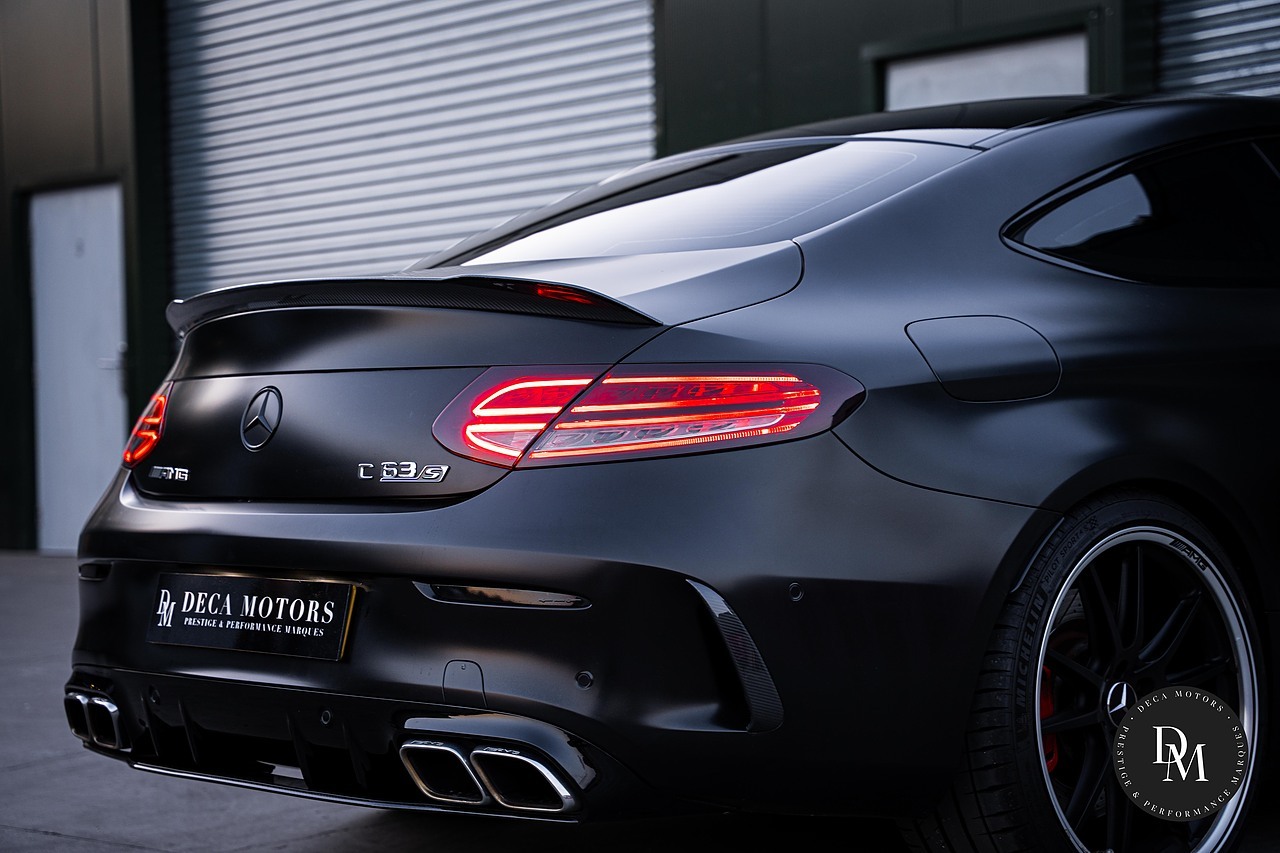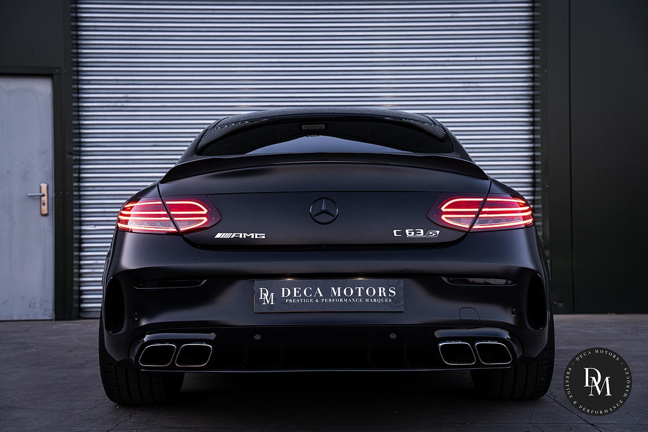 Mercedes-Benz C Class C63 V8 BiTurbo AMG S, MB Service History, PPF in front end and side doors, chameleon tinted front windshield, Satin black full wrap with carbon PPF on the aero kits, and ceramic coated, Stage 2 tuning and heatshelded catless downpipes, ASR exhaust flaps remote control, Eibach Pro lowing springs and wheel spacers, Full carbon interiors including speaker panels and steering wheel (Factory springs and downpipes can still come with the car) VIEWING BY APPOINTMENT ONLY, FINANCE PACKAGES TO SUIT YOUR NEEDS.